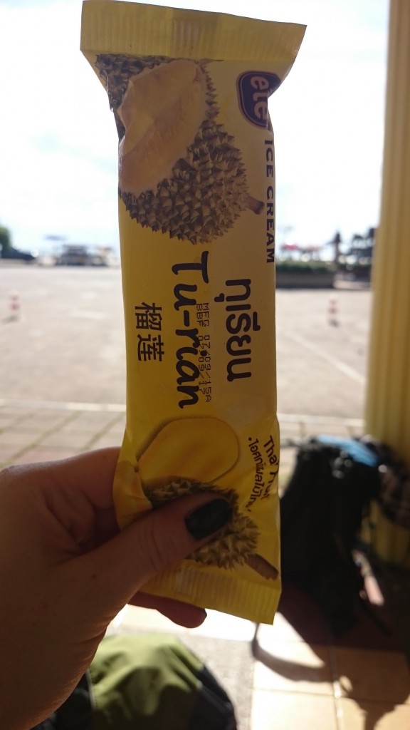 Am Ende hat der Fisch noch ganz gut geschmeckt. Nun ist immer noch etwas Zeit, wir laufen rum. Viel kann man nicht machen. Ein Eis ist noch drin. Natürlich nehme ich nicht das klassische Orange, sondern das mit der exotischen Frucht drauf. Es schmeckt…wie Kloake. Man kanns nicht anders beschreiben, es ist wirklich eklig. Wir waren auch so schlau und haben uns gleich jeder eins gekauft. Wir schmeissen es auch beide weg. Später sehe ich jemanden (ein Europäer), der das Eis aufisst. Der sollte mal zum Arzt gehen, ich glaube, seine Geschmacksnerven sind geschädigt. So langsam frage ich mich, was immer damit gemeint ist, dass die Thaiküche eine der leckersten der Welt sein soll. Bisher bin ich nicht so überzeugt.