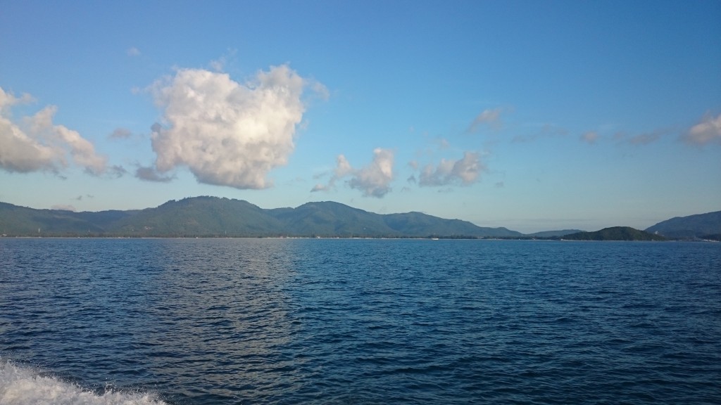 Nach langem Warten (auch im Boot), fahren wir endlich los. Jetzt sind wir bald da. Wir fahren mit einem Schnellboot, das etwa eine dreiviertel Stunde fährt. Ich stehe die ganze Zeit draußen und schaue zu, wie wir uns der Insel nähern. Zwischendurch fahren wir auch an einigen unbewohnten Inseln vorbei, es sieht sehr schön aus. Angekommen in Koh Samui schnappen wir uns auch sofort ein Taxi. Es scheinen viel zu wenig Taxis vorhanden zu sein, darum beeilen wir uns lieber. Bereits in Deutschland haben wir uns überlegt, zu welchem Strand wir wollen und haben uns für den Mae Nam Beach im Norden entschieden. Dem Fahrer sagen wir, dass wir noch kein Hotel gebucht haben und eins suchen. Er zeigt uns eins, wir dürfen uns anschauen wie uns die Zimmer gefallen und entscheiden ob wir bleiben wollen. Wir bleiben. Das Taxi hat 600 Baht gekostet (also ca. 15 Euro). Wir sind uns sicher, dass wir wieder abgezogen wurden, aber wir haben auch gerade keine Lust zu handeln.