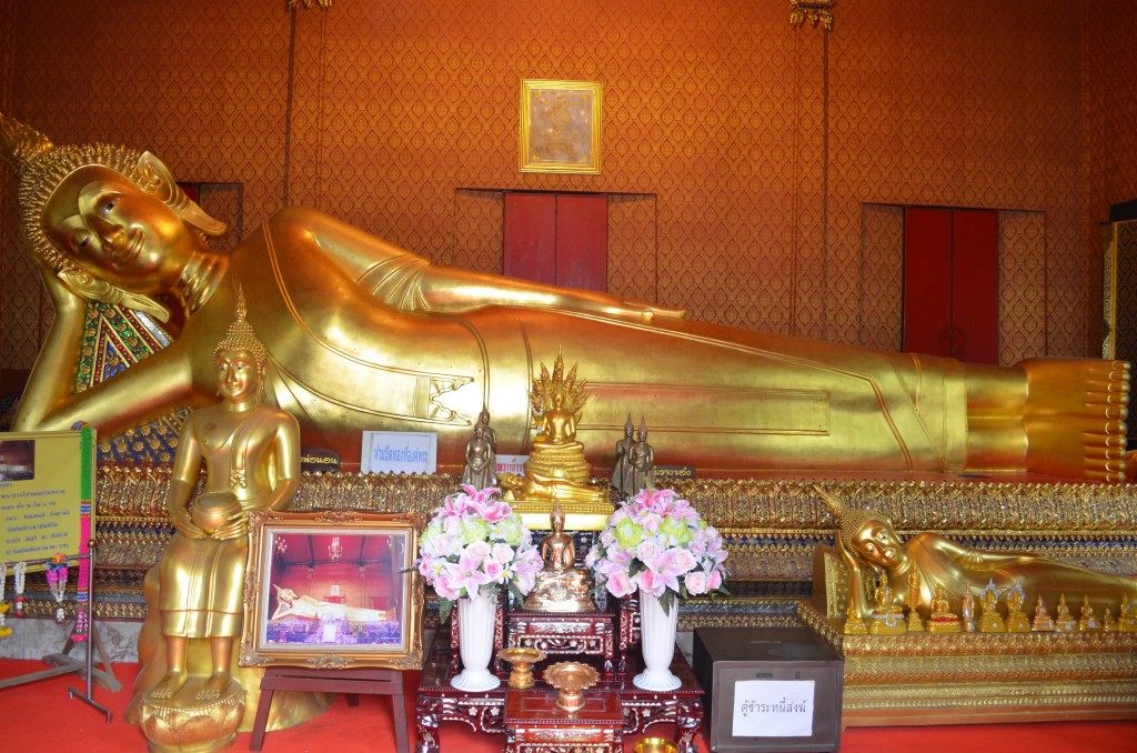Wir gehen zurück zu unserem Tuk Tuk fahrer und müssen jetzt erstmal zum shoppen gehen. Er will, dass wir einen Anzug kaufen. Auch wenn wir keinen brauchen, sollen wir mal 10 Minuten gucken. Wir gehen in einen Laden, werden in einen Hinterraum gebracht und dort bequatscht. Nach ein paar Minuten schaffen wir es zu flüchten ohne etwas gekauft zu haben. Nun geht es nochmal zum Lucky Buddha, wieder sieht es etwas schmuddelig aus. Der Fahrer möchte uns noch anbieten uns woanders hinzufahren, aber wir haben keine Lust mehr. Es bleibt bei 40 Baht. Der Lucky Buddha ist wieder eine Statue, die liegt, aber viel kleiner als eben der Big Sleeping Buddha. Man kann hier schonmal durcheinander kommen mit den ganzen Buddhas.