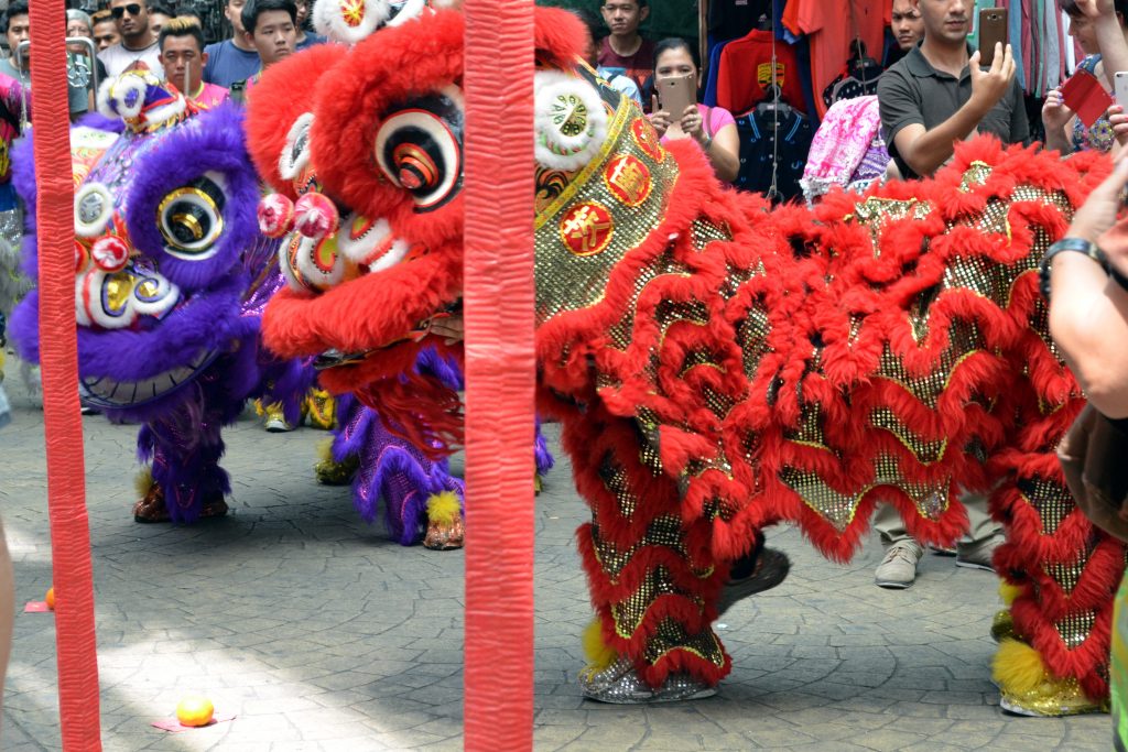 In der Umgebung gibt es fast nur europäisch angehauchte Restaurants, also beschließen wir kurzerhand in ein Taxi zu steigen und nach China Town zu fahren. Dort gibt es ne riesen Action mit lauter Drachen und Trommelmusik. Es ist uns zu diesem Zeitpunkt noch nicht bewusst, aber am 28. Januar war chinesisches Neujahr und heute ist der letzte Tag der Feierlichkeiten. Auch am Abend bekommen wir die Festlichkeiten des Neujahrs mit. Bereits während einer Thai Massage bekommen wir den ein oder anderen gezündeten Knaller mit. Später gibt es noch richtiges Feuerwerk, Drachenshows, Essenstände usw. Es ist natürlich sehr voll und sehr laut. Willkommen im Jahr des Feuerhahns!