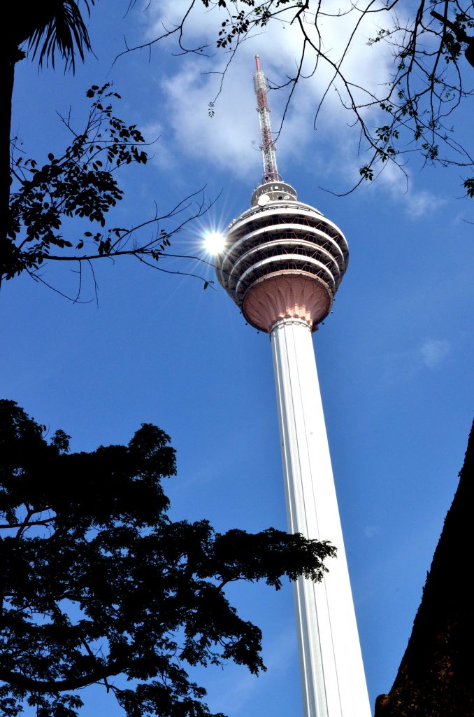 Nun geht es zu Fuß zum Menara Kuala Lumpur Tower. Er ist 421m hoch und damit nur geringfügig kleiner als das Wahrzeichen der Stadt, die Petronas Towers, die man vom Menara aus aber wunderbar anschauen kann, sogar über eine Plattform mit Glas auf dem Boden…also wo man 400m in die Tiefe Blicken kann. Eindrucksvoll.