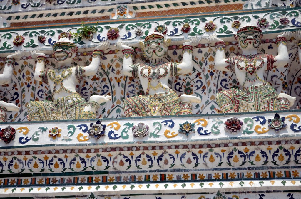Es ist jedenfalls klar, dass wir nur eins schaffen: entweder Lumpini Park oder Wat Arun. Wir wählen den Wat Arun und es ist eine gute Wahl. Es handelt sich dabei um einen Tempel, der nicht so stark von der Farbe Gold geprägt ist, sondern sehr weiß. Im Moment wird er Restauriert, aber nicht komplett, einiges scheint schon saniert zu sein, anderes sind noch etwas verwittert aus, das muss sicherlich noch erledigt werden. Es ist ein recht schöner Tempel, auch, weil er eben ein wenig anders ist.