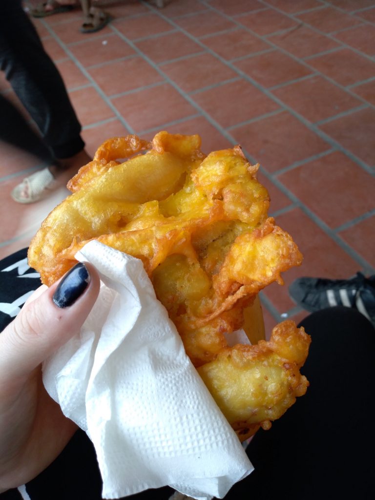Bald ist es 5 Uhr und wir sind zurück an unserem Auto. Ich kaufe mir noch einen kurzen Snack, frittierte Banane, aber ohne vorher zu wissen was es ist. Schmeckt sehr lecker.