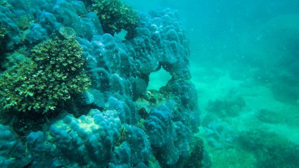 Am folgenden Tag habe ich meinen ersten richtigen Tauchgang. Der nördliche Teil der Insel gilt als weniger hübsches Tauchgebiet, dafür ist es aber leichter. Für den Anfang also voll okay. Es wird etwa eine Stunde mit dem Boot rausgefahren. Die Tauchausrüstung müssen wir nicht selber zusammenbauen. Für den Anfang auch ok, wobei etwas Übung nicht schaden könnte. Der Tauchmaster ist ein sehr entspannter Typ und das Riff ist generell recht leer. Wir wurden bereits um 7.30 abgeholt, da bleiben die größten Tourianhäufungen noch aus. Leider gilt das aber auch fürs Frühstück. Meine ersten beiden Tauchgänge habe ich jedenfalls gut gemeistert an dem Tag. Wir sind bis 7 Meter getaucht und haben ein paar Schnecken und kleinere Fische gesehen.