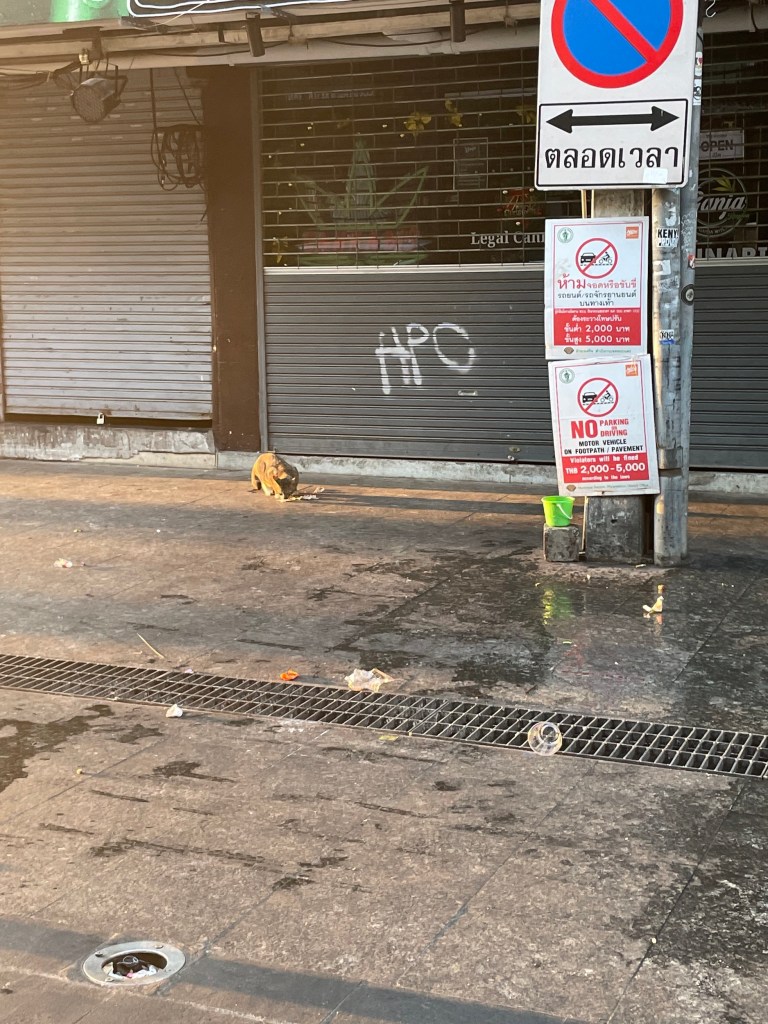 Um 7 werden wir mit dem Taxi abgeholt. Schön auch mal die Khao San Road zu dieser Uhrzeit zu sehen. Sie ist nicht komplett leer, aber vermutlich ist sie um diese Uhrzeit ein sehr seltens Fotomotiv.