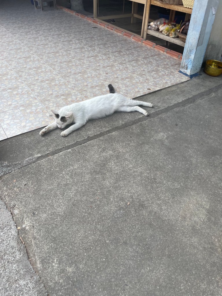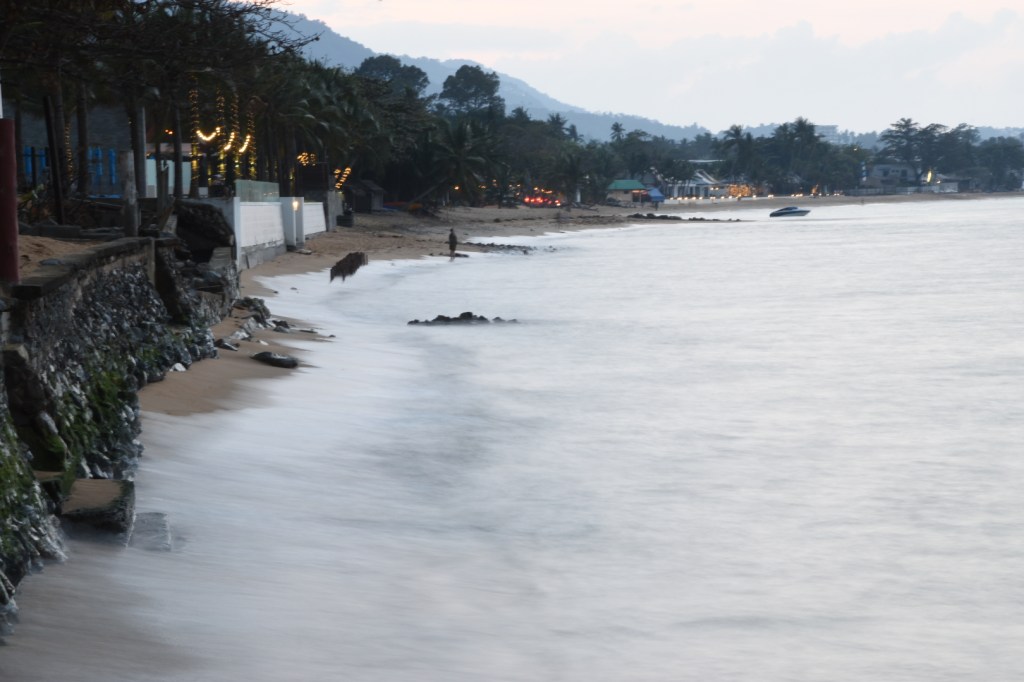 Übrigens habe ich mich gestern daran gewagt zu Fuß von unserem Strand zu dem Rest von Mae Nam Beach zu laufen als das Wasser gerade ziemlich weit zurück lag. Bei stärkeren Wellen ist es recht anstrengend. Heute war das Wasser etwas ruhiger und man hätte leichter dorthin laufen können.