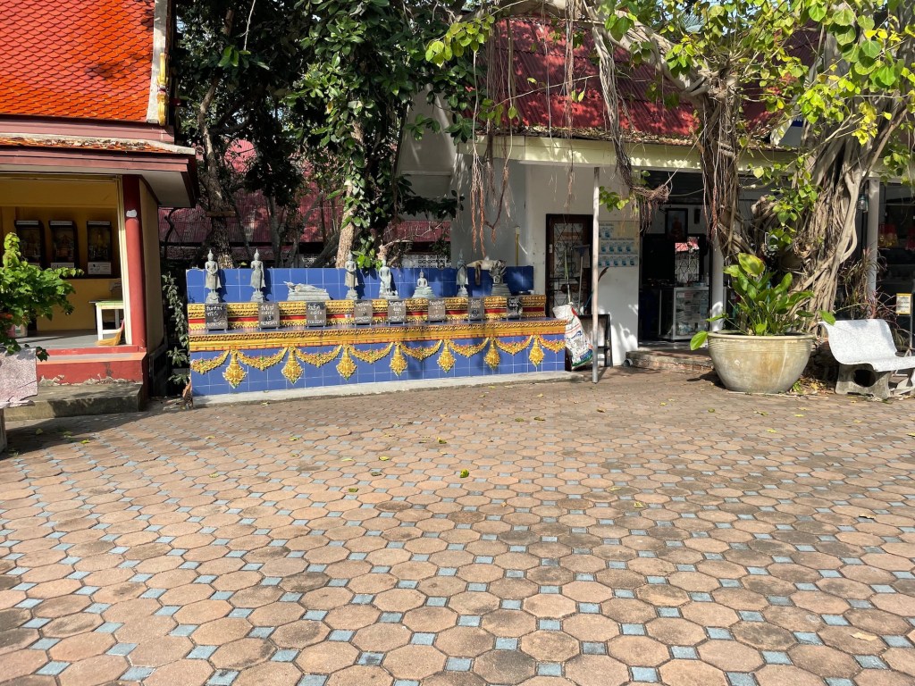 Der goldene Große Buddha ist dann sehr eindrucksvoll und umgeben von weiteren kleinen Buddhas. Manche stehen, liegen oder sitzen. Ich glaube, jede Position steht für einen Wochentag. Von weitem sehen wir dann den anderen achtarmigen Buddha schon. Als wir wieder unten sind, merken wir, dass wir eigentlich gar keine Lust haben dort nochmal hinzufahren. 2x Koh Samui, 2x Golden Buddha, aber 0x der Achtarmige.