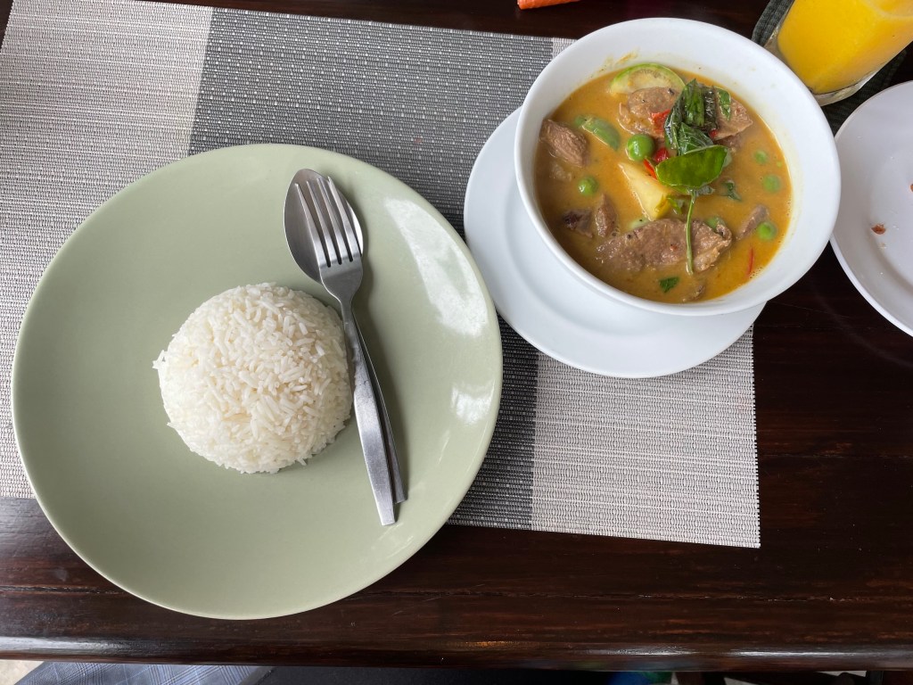 Mittag haben wir in einem tollen Restaurant gegessen. Wir waren bereits vor 7 Jahren im Fischrestaurant „The Fish“, bei uns in Mae Nam. Damals habe ich das erste mal was richtig scharfes gegessen: Roten Schnapper mit einer Currysoße. Es hat mir komplett die Schuhe ausgezogen Da wollte ich unbedingt nochmal hin. Es war wieder sehr lecker, allerdings wird einem die Soße jetzt separat serviert und man kann selber nachschärfen.