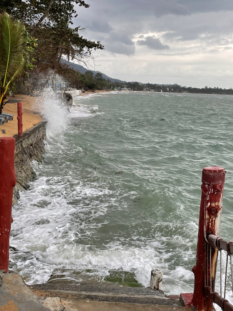 Gestern bin ich ein bisschen durch die Umgebung gelaufen und wollte ein paar Fotos schießen. Das Wetter ist gerade etwas stürmisch gewesen und da mussten sich andere Aktivitäten finden statt Schwimmen. Ich dachte, dass ich vielleicht noch ein paar interessante Tiere entdecke. Aber es ist bei ein paar Vögeln aus der Ferne und ein paar wenigen Insekten geblieben. Pflanzen gab es ein paar mehr zu sehen. Außerdem habe ich einen Laufweg gefunden um zu einem Nachbarrestaurant zu gelangen ohne den Strand nutzen zu müssen. Und: ich konnte beobachten wie ein kleiner Vogel mit spitzem Schnabel eine der Elektroleitungsspinnen gerissen hat. Sie war sehr begierig darauf die Spinne zu fangen. Ich habe mit Freude dabei zu gesehen. Inzwischen ist das Netz wirklich leer.