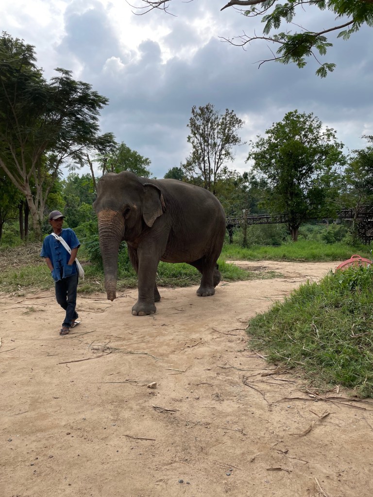 Wir hatten ein paar Tage eher schlechtes Wetter. Es war bewölkt und der Strand unbegehbar. Seit 2,3 Tagen ist es so paradiesisch wie wir es kennen. Dummerweise geht unsere Zeit auf Koh Samui langsam zu Ende. Seitdem haben wir noch ein paar schöne Sachen erlebt. Vor 3 Tagen waren wir im Elefant Kingdom. Ein Park, in dem alte, kranke Elefanten leben. In kleinen Besuchergruppen ist es möglich dorthin zu gehen und die Elefanten zu füttern und auch zu streicheln. Als erstes bekommt man eine Einführung und dann „kocht“ man zusammen Essen für die Elefanten. Eigentlich matscht man nur ein paar Bälle aus Bananen, Getreide, Grünzeug usw. zusammen und verfüttert sie. Danach geht man auf eine Platform, die man entlang spazieren kann und gibt den Elefanten dort noch einmal Grünzeug und Bananen. Nach einer Pause kann man direkt zu den Elefanten rein und sie beobachten oder kurz anfassen. Bis hier hin hatte man es die ganze Zeit mit weiblichen Elefanten zu tun. Später dann ging es noch kurz zu den etwas wilderen Männchen und denen durfte man noch einmal Gras und Bananen geben. Durch den Zaun durch allerdings nur. Es war insgesamt ganz schön. Vor allem bei den weiblichen Elefanten hat man gesehen, dass sie schon sehr alt sind und etwas seltsam geformte Rümpfe hatten. Als wenn sie viel schwere Arbeit leisten mussten früher. Es geht ihnen hier definitiv besser. Der Park ist auch ganz schön mitten im Dschungel gelegen.