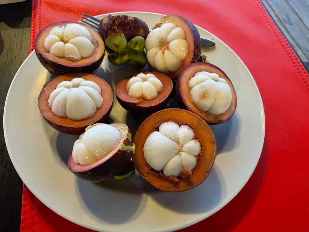 Neulich haben wir abends in unserem Hotelrestaurant frisch gepflückte Mangostan bekommen. Eine typische Frucht aus dieser Region. Ich hab sie vorher schon einmal probiert, aber nie hat sie mich so überzeugt wie hier. Sie ist sehr saftig und lecker süß. In jedem Urlaub habe ich so meine Lieblingsfrucht und dieses mal ist es die Mangostan.