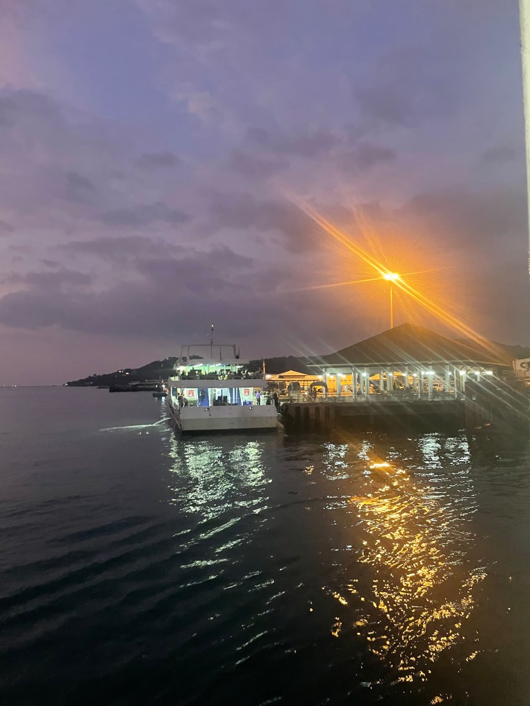 Kein Problem. Ja, sind 4 Stunden warten, aber zum Glück kann man am Pier sitzen, warmes essen kaufen und sogar einen Spielplatz gibt es. Gegen halb 4 fährt endlich unsere Fähre ein. Gemütlich fahren wir 2,5 Stunden bis nach Koh Phangan. Endlich! Nach geschlagenen 8 Jahren sind wir endlich wieder hier. Das war nie unser Plan, aber jemand mit C am Anfang hat uns da einen ziemlichen Strich durch die Rechnung gemacht.