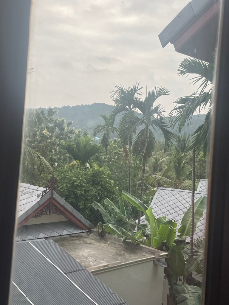 Endlich angekommen. Jetzt verlassen unsere Reisetaschen erstmal nicht mehr diesen Ort für einige Zeit. Und ich weiß jetzt schon, dass es zu kurz sein wird. Unser Bungalow ist traditionell thailändisch eingerichtet mit viel dunklem Holz, schnörkeln und: nicht so vielen hellen Lampen. Die Asiaten haben zu Reizüberflutungen ein etwas anderes Verhältnis als wir. In manchen Unterkünften bekommt man einfach die volle Dröhnung Licht. Auch was Musik und das gleichzeitige Telefonieren mit Lautsprecher angeht sind sie oft total schmerzfrei. Ich würde alleine bei der Musik schon einen Schlaganfall bekommen.