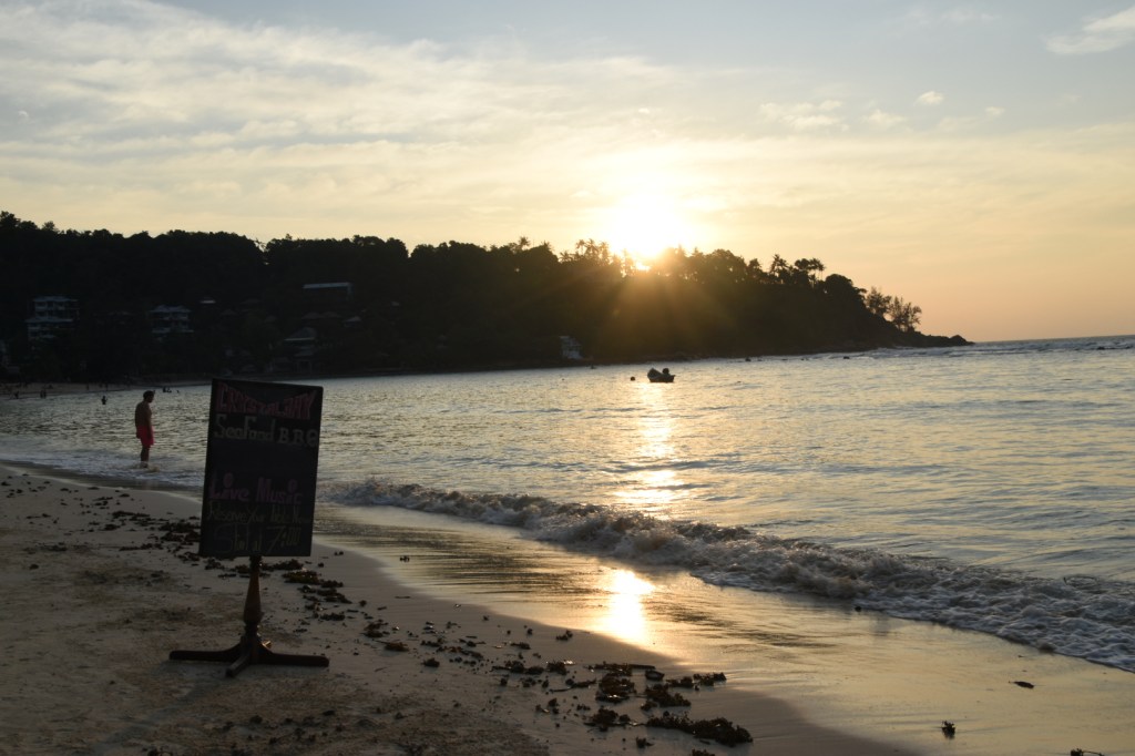 Obwohl unser Strand etwas nördlich gelegen ist, haben sogar wir einen schönen Sonnenuntergang heute. Wie es wohl gerade in Haad Yao aussieht? Vermutlich lauter Menschen, die einen super-Sonnenuntergang fotografieren. Als es langsam dunkel wird, sehen wir einen hellen Stern. Eine schnell heruntergeladene Skyapp sagt mir, dass das Venu sein soll. Und daneben Saturn.