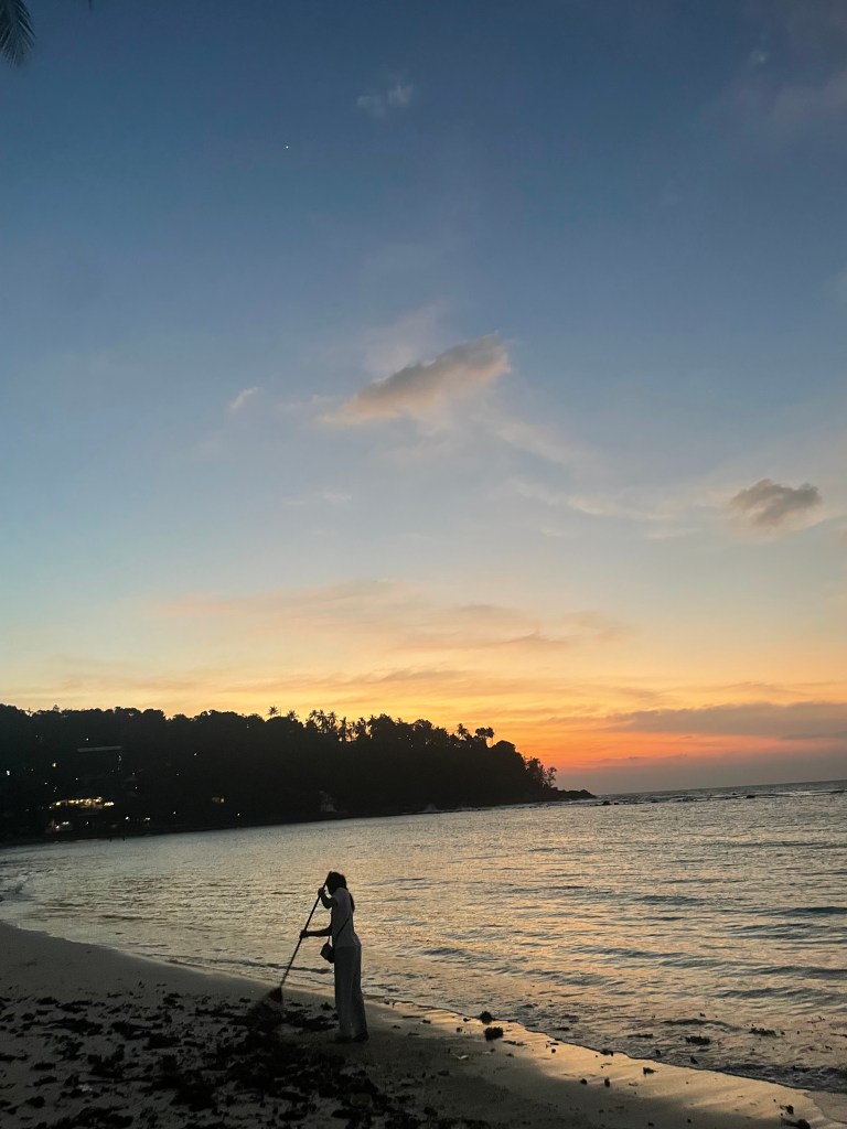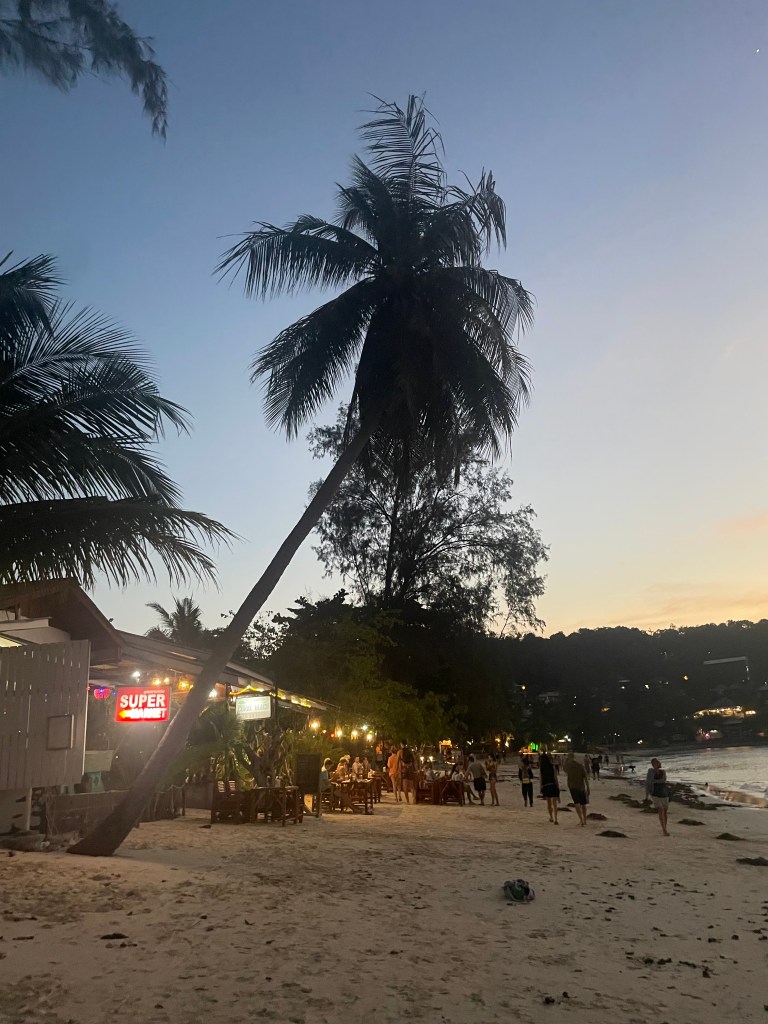 Vormittags denken wir uns, dass wir das gute Wetter nutzen und zum Strand gehen sollten. Bei uns am Strand könnte der Zugang nur so mittelmäßig sein, darum fahren wir ein paar Meter nach Haad Salad rein (wir befinden uns eher am südlichen Rand) und wollen von dort aus ans Meer. Joa, aber auch dort ist Flut und zwar in genaaaaau..3 Minuten hat sie ihren Hochpunkt. Ja ok, wae ne doofe Idee. Na gut, dann holen wir uns ein Eis und etwas zu trinken und kühlen uns an einem Minimarkt ab.