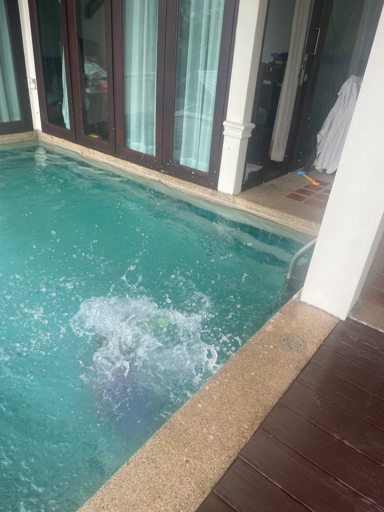 Auf dem Rückweg kommt langsam die Sonne heraus. Ah, endlich. Zu Hause angekommen springe ich erstmal ins Meer und dann noch in den Pool. Das Meer ist immernoch wellig. Macht aber mehr Spaß als der Pool. Dadurch, dass unser Pool permanent im Schatten ist, ist er auch immer recht kühl. So ein privater Pool ist nett, aber eigentlich auch unwichtig. Und vermutlich ne ziemliche Energieverschwendung.