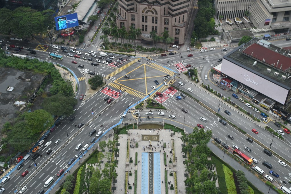 Nach etwas mehr als 30 Minuten ist der Spaß auch schon wieder vorbei. Ich bin zufrieden mit meiner Fotoausbeute. Ich weiß gar nicht wieviele Fotos ich schon von dem Menara Fernsehturm habe. Aber er dürfte eines meiner am meisten fotografierten Objekte sein. Auf dem Rückweg werden wir nochmal auf ein Verkehrsproblem aufmerksam, dass wir selbst aus anderen Ländern Asiens so noch nicht kennen. Es gibt zwar Fußgängerampeln, aber sie sind teilweise extrem schlecht geschaltet. Wir stehen an der Kreuzung vorm Hotel locker 5 Minuten an. Die Autoampeln wechseln sich immer wieder ab. Als die Nerven fast blank liegen wird auf einmal grün. Wir haben 20 Sekunden Zeit für 4 Spuren.