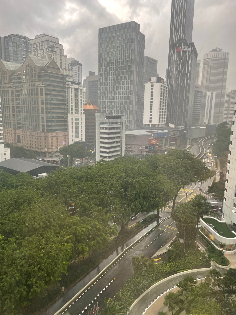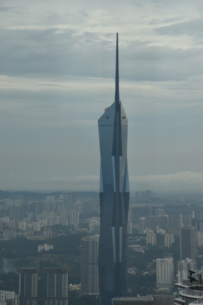 Es gibt Dinge an denen ich nur schwer vorbeikomme in Großstädten und das sind Wolkenkratzer-Besucherplattformen. Wir kennen schon die Aussichtsplattform inklusive Glasboden vom Menara KL Fernsehturm. Heute dürfen es dann die Petronas Towers selber sein. Ich habe die Tickets dafür bereits vor mehreren Wochen gebucht. Das war schlau, denn als wir ankommen steht auf einem Schild, dass für heute alles ausverkauft ist. Es ist mir ein inneres Schulterklopfen. Zunächst fahren wir in den 41. Stock. Dort befindet sich die Skybridge. Also die Verbindungsbrücke der 2 Türme. Nach 10 Minuten geht es weiter in den 86. Stock. Quasi nochmal doppelt so hoch. Die Aussicht ist super. Es ist ein bisschen bewölkt, aber mir gefällt das. Hätte ich den Timeslot ein bisschen später gebucht, hätte das vielleicht auch sowas wie ein Sonnenuntergang werden können. Man hat einen tollen Blick auf die anderen Wahrzeichen: Den Fernsehturm und den noch sehr neuen Warisan Merdeka Tower. Er sticht durch seinen modernen Stil und seine lange Spitze sehr hervor. Viele andere Hochhäuser selber wirken eher etwas aus der Zeit gefallen. Die Petronas Towers sind auch lange nicht mehr das höchste Gebäude der Welt. Inzwischen nicht mal mehr das höchste von Kuala Lumpur. Aber sie sind immernoch beeindruckend. Vor allem ist man hier wirklich richtig hoch. Da gibt es kaum noch Etagen drüber. Bei einem Fernsehturm zb ist ja immernoch die lang Antenne, die man nicht betreten darf. Oder kann.