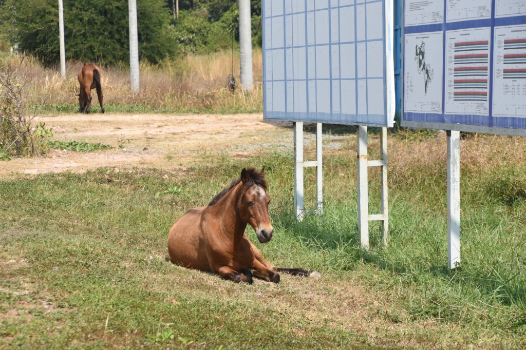 Wir kaufen uns kurz was zu trinken und wollen bald wieder gehen. Bis ich in der ferne etwas braunes sehe…ist das…ein Pferd? Tatsächlich, da steht ein Pferd in ungefähr 100m Entfernung. Wir gehen hin und da steht sogar ein zweites. Mitten in der Sonne.